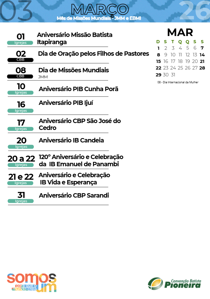 Copyright 2019 Convenção Batista Pioneira do Sul do Brasil - Todos os direitos reservados.